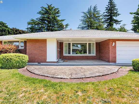 Updated Mid Century Modern home. Two bedrooms possible third or office. Beautiful newly remodeled kitchen and bathrooms. New refrigerator and stove. Huge living room 16x24 with wood floors, fireplace, tray ceiling, recessed lights, and tons of natural light. Large dining room plus a nook for eating options. New electrical panel, interior doors, closet doors, baseboard molding and recessed lighting. Newer roof. Covered patio with outdoor fireplace, great for entertaining. Fenced backyard. Washer and dryer is included. Great location close to shopping, bus lines and freeway. [Home Energy Score = 2. HES Report at https://rpt.greenbuildingregistry.com/hes/OR10205390]