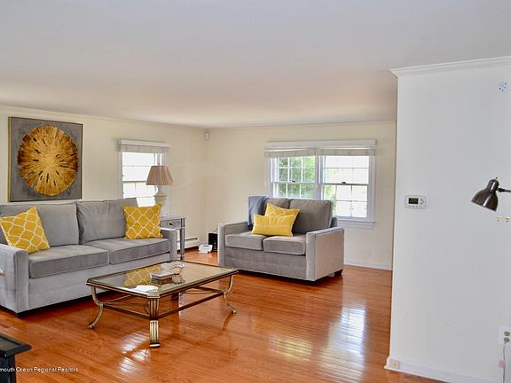 Shore colonial on large 81x150 lot with access to prestigious Runyon Ln in the rear and beach access steps away. Great indoor/outdoor space in 3 season sun room adjacent to in-ground, heated pool. Newer kitchen with s/s appliances, family rm with built-ins, decorative moldings, & hardwood floors throughout 1st level. Basement with high ceilings adds usable square footage. Attached garage. Access via Runyon Ln or Ocean Ave.