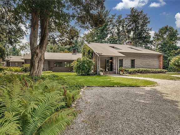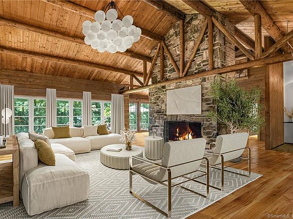 Sited atop a sunny ridge on two lushly landscaped acres, this elegant Adirondack-style home was built as a mid-Century retreat. Expanded and modernized, it offers contemporary convenience and luxury while honoring the structure's rustic roots. The heart of the home is a breathtaking 2-story living roomwith a dramatic fieldstone fireplace, hand-pegged floors, massive cedar beams and windows that provide secluded views from every vantage. Pool, patios and gardens blend seamlessly to make every day a getaway in this one-of-a-kind stunner that offers 4-season living at its best (Addition completed in 1986)