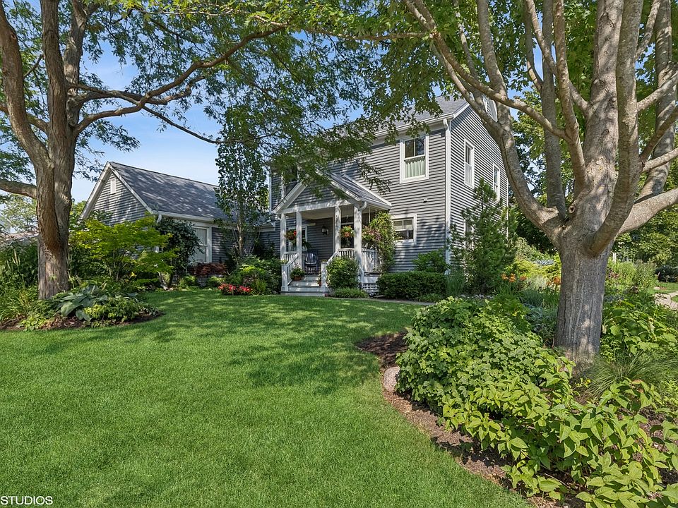 Charming 3 bedroom Halsey model is picturesque overlooking the Village Green in Prairie Crossing! The Village Green and Gazebo area is like an extension of the yard, so much green space to explore. Stunning gardens have been lovingly curated with dozens of perennials and much foliage provides backyard privacy. So many updates to this home include a modified first floor plan with additional square footage added to the kitchen, custom built-ins and a sliding glass door to the deck! All NEW hardwood added to the 2nd floor, updated bathrooms and granite in the kitchen! This home has been lovingly cared for and is just steps to Lake Leopold and the beachfront! Don't miss this opportunity!