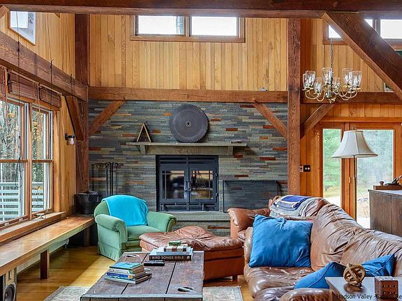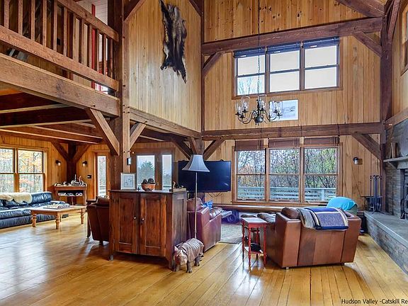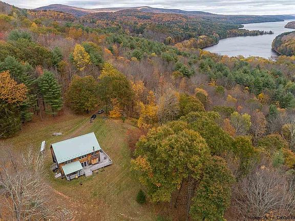 The privacy you've always wanted on 43+ acres next to protected DEP land with potential Rondout Reservoir views with some judicious cutting in a beautiful barn-style home with 50 windows allowing golden light to stream inside. Current owner has made numerous upgrades, including an extraordinary new fireplace constructed by a local artisanal stonemason, as well as a new boiler, buried power lines as well as electrical, heating and cosmetic improvements (see addendum for full list). This 3-bedroom, 2-bath post-and-beam with 76 feet of wraparound decking is a reconstruction of a barn once built on the site and is just a quarter-mile down the road from the Bald Eagle Observation Site. Living, dining and kitchen rooms are all open to each other and create a huge volume of space. And an immense mudroom for all those outdoor accessories and clothes. Full dry basement has been used as both workshop and entertainment space. As stunning as this barn conversion is, it is the seclusion of the property -- your own private hiking world -- that is the icing on the cake. All the nature and serenity you could ever want and just two hours from Manhattan