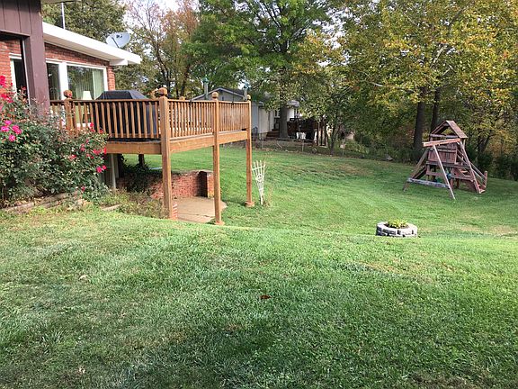 Great location and view on bluffs above Meramec, just off 141 north of Arnold at 1544 Windriver. Nearly an acre, with a garden area and established perennial fruit trees and bushes. The detached 2 car garage is 24 X 24 with lots of built-in storage. Finished basement. Large deck and covered patio.