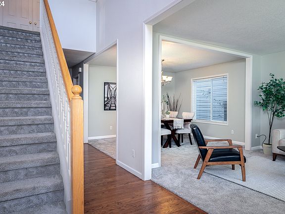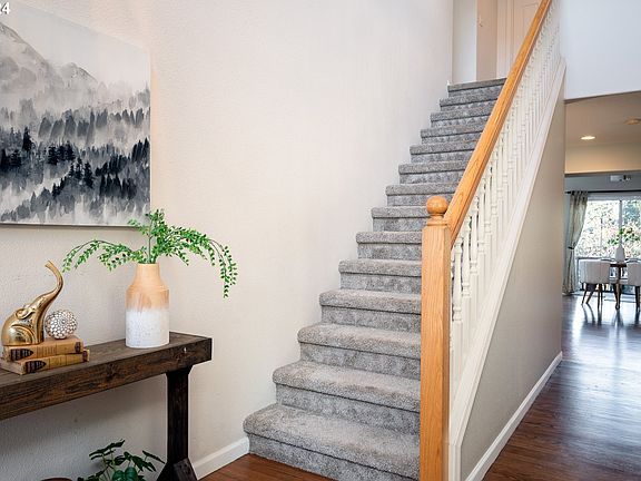 Welcome to Your Dream Home in Sunnyside/Happy Valley!Discover this spacious and beautifully maintained two-story Traditional home located in the highly sought-after Sunnyside/Happy Valley area, within the desirable Clackamas School District. With 5 bedrooms and 2.5 bathrooms, this home offers versatile living spaces to suit your needs. Upstairs, you’ll find 4 bedrooms, including a luxurious primary suite featuring a walk-in shower, double sinks, and a relaxing soaking tub. Conveniently located upstairs, the laundry room comes complete with a washer and dryer. The main floor boasts a 5th bedroom, perfect for use as a den, office, or guest room.The updated kitchen is a chef’s delight, showcasing quartz countertops, stainless steel gas stovetop, stainless steel fridge, and a functional layout that flows seamlessly into the dining nook. The main level also features formal living and dining rooms, complemented by neutral tones, newer carpeting, and hardwood floors in the entry, hallway, kitchen, and eating area.For wine enthusiasts, a standout feature awaits—a custom built wine storage area located in the partially finished space under the house. Step outside to enjoy the terraced backyard, which backs up to serene greenspace. Take in the tranquil views and natural habitat, providing a peaceful retreat right at home. Additional highlights include: New roof installed in 2022Proximity to Hidden Falls Nature Trails, schools, shopping, restaurants, and Kaiser Hospital. Easy freeway access for added convenience. Don’t miss this opportunity to own a home that combines comfort, style, and an unbeatable location. Schedule your private tour today. This is more than a house; it’s a great place to call home!