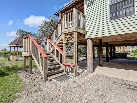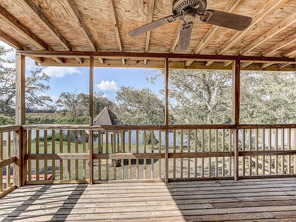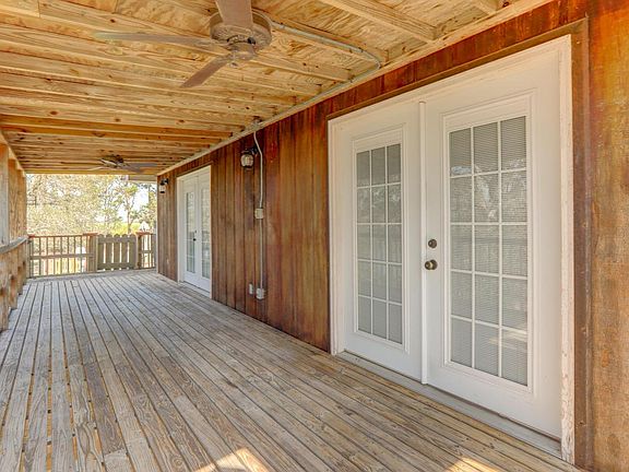 As you sit on the back porch with cedar siding looking out over the water, you may feel as though you are in a highly secluded area, yet you are only 2 miles from the center of town. Whether a home or a camp, the serene setting says tranquility. There are 2 sets of French doors to enter the home from the porch: one into the dining/kitchen, & the other set into the living room. There is also a porch & entrance into the living room from the side. The house was built elevated and is a very clean 3 bedroom 2 bath with the kitchen having oak kitchen cabinets, a pantry, and a built in microwave stove vent. The dining area off the kitchen is open to the living area.