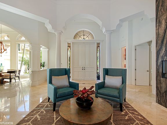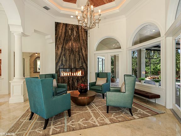 This sprawling 5682-square-foot custom tropical oasis has quick access to the area's major hospitals, shopping centers, RSW airport, and Interstate 75. On over an acre of maturely landscaped yard this home is one of only four neighborhood lots abutting Hendry Creek. Completely renovated with professional interior design and furnishings by Clive Daniel Home. Full home automation and security. Lush, lagoon style pool with two natural stone waterfalls. Rare natural quartzite linear book-matched fireplace with pecky cypress ceiling detail. Natural stone, wood flooring, and custom accents keep this opulent home feeling warm, organic, and modern. Extravagant molding and other extensive architectural details are what set this home apart. Wolf gas range with professional venting,Ceasarstone quartz counters with dual waterfall edges,custom cabinetry,and an abundance of seating for hosting friends and family. Dedicated bar with Miele coffee maker, wine cooler and beverage center is conveniently located for ease of entertaining. This beautiful home perfectly blends outdoor living with modern design, lush landscaped views, floor to ceiling windows, pocketing sliders, and bright, sunlit rooms.