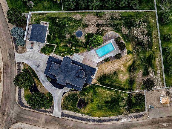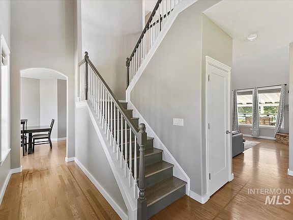 Discover your dream home in the highly sought-after Moonstruck subdivision, just minutes from Lake Lowell & Mallard Park. This exceptional 1.26-acre property is an entertainer's paradise, featuring a stunning SoftSwim pool and an expansive outdoor space. Inside, you'll find beautiful hardwood floors throughout, enhancing the warmth and elegance of the home. The fully upgraded kitchen shines with custom wood cabinets, sleek black stainless appliances, and luxurious granite counters, all complemented by a wine bar in the formal dining room. This home is perfectly designed for modern living, with a designated home office, a finished basement, dual zones & a versatile shop space. The primary suite is a true retreat, boasting dual closets, a spa-like bath with a walk-in shower, a freestanding tub, and direct access to the covered back patio. Whether you're hosting gatherings or enjoying peaceful solitude, this home offers the best of both worlds. Don't miss the chance to make this extraordinary property your own!