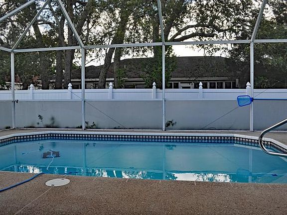 Welcome home to Deerfield. Here is an immaculate and well-maintained 3/2/2 pool home with a screened lanai. This home features a large great room with vaulted ceilings, adjacent formal dining room, a well-planned kitchen with breakfast bar and a separate breakfast nook. The large master bedroom features an en suite with a window seat, and a bathroom with his and her vanities, a separate water closet, and a walk-in closet with pocket doors. The split floor plan gives you 2 secondary bedrooms with wood veneer flooring and an adjoining pool bath from one. There is a convenient inside laundry room with utility sink and cabinets. The attached two-car garage is screened and has additional cabinets for plenty of storage. Extras include window tinting, a new refrigerator, newer range, and a 2013 roof. The beautiful in-ground pool was resurfaced in 2013 and the deck in 2014. Landscaping includes wonderful orange trees and irrigation. Amenities abound, including a nearby clubhouse, fitness gym, community swimming pool, basketball, tennis, and shuffleboard courts. Just minutes from the Suncoast Pkwy (SR 589) for an easy Tampa commute. All this for under $150K.