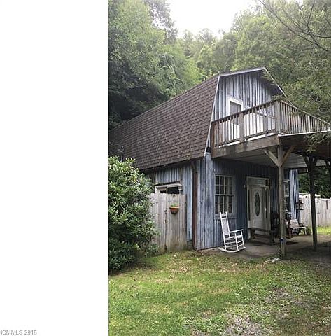 Come check out this precious barn style cottage located in rural Cruso, NC. The Pigeon River, known for its mountain trout fishing, is located across the street. This home has a new roof, newer vinyl siding, master on main with bathroom and a second bedroom and bathroom upstairs with large balcony overlooking the mountain setting. Located on over 2 acres of unrestricted land, there's plenty of room for critters, another home site (must do due diligence to determine buildability), plenty of flat room for parking. Huge 8 X 32 outbuilding created for music studio.