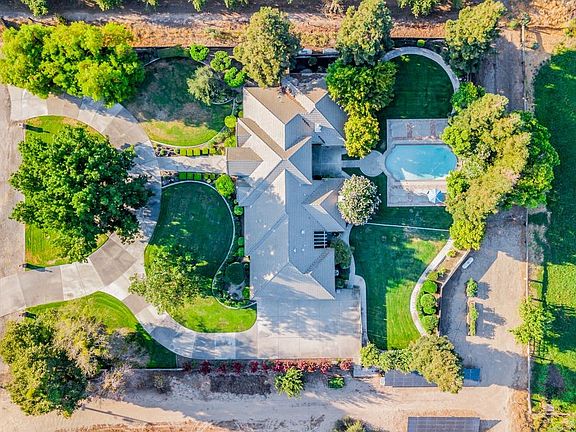 Enjoy resort living on this gorgeous custom estate featuring country living at its finest beginning with a circular driveway, dramatic marble foyer, open floor plan, large updated kitchen, sub zero refrigerator, built in wine fridge, single story, 4 bedrooms, 3 baths, master suite features steam shower and jacuzzi tub, 3 car garage with tons of built in cabinets, huge yard, in-ground heated gunite pool, water fall, solar owned on 2 acres of privacy on a dead end street. Video system (6 cameras outside) with surround system equipment stays. So much room for all your recreational vehicles in a very private setting.
