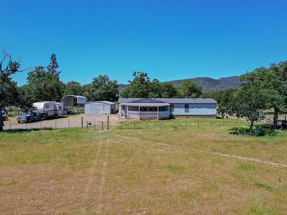 This homes features 4 bedrooms and an office with two full bathrooms and is 1848 sq. ft. Sitting on a flat 9 acres of fully fenced and crossed fenced land the views are amazing especially of Mt. McLaughlin. The home has a covered front porch and trex decking. Inside the home you will find a roomy split floor plan with large living room and family room. The kitchen is open and has plenty of cabinets and counter space. Outside you will find a 3 car garage/ shop as well as a barn that has 4 stables/stalls. The well is excellent per owner and the front even has inground sprinklers. The property is a rectangle shape and has a lot of potential.