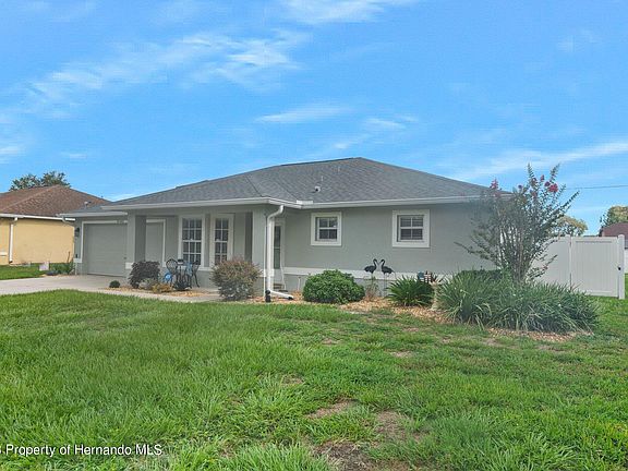 *Active under contract* Welcome to this stunning 3-bedroom, 2-bathroom, 2-car garage home, located in the hidden gem neighborhood of Deerfield! Major updates have already been taken care of like the new water heater and roof in 2022 and A/C in 2018! Lots of curb appeal as you pull up to the beautifully landscaped front of the home that features a covered front porch. Inside is an open concept layout that has been almost completely remodeled. Wood look tile flows through the common areas while vinyl planking adorns the master bedroom and carpet in only the two secondary rooms. The kitchen comes complete with granite countertops, stainless steel appliances and a gorgeous backsplash. A breakfast nook with bay windows provides plenty of natural light throughout your morning coffee ritual. Step out back through the French doors and be even more impressed. Enjoy a solar heated saltwater pool (added in 2016) surrounded by pavers along with a huge screen enclosed patio featuring an extra covered area for entertaining! Enjoy this backyard oasis in the privacy of your fully fenced yard! Deerfield neighborhood has a super low HOA but a ton of amazing amenities including a clubhouse, community pool, playground, fitness center, tennis and basketball courts. And if allllllll of this was not enough - you are more centrally located than ever! Just 1 mile away from Target and Kohls or drive a little further and there are tons of nearby restaurants, shopping and entertainment! You're also less than 10 miles away from three area hospitals. Not to mention, you're only 15 miles away from the Weeki Wachee River, Gulf of Mexico and nearby beaches. Did you need to commute? Less than 1 mile from the Suncoast Pkwy, now that's convenience! This home truly has it all - don't miss out on this incredible opportunity to live comfortably within minutes of everything you need - schedule your showing today!