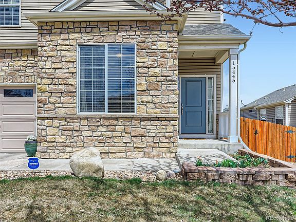 Welcome Home! This gorgeous former model home is waiting for you. Excitedly, take your first step into your oversized foyer with vaulted ceiling and stunning hardwood floors that continue throughout the entire main level! The family room is expansive enough to entertain everyone while they enjoy the ambiance in front of your custom tiled fireplace. You wanted a gourmet kitchen and now you have one! Grante counters, stainless appliances (microwave, refiregerator, stove/range are only 1 year old!) built in pantry and custom island. Serve delicious meals in your spacious eat-in kitchen. Working from home will not feel like work in your new oversized main floor office with double doors and enough room for two. Conveniently, your main floor 1/2 bath is just steps away. Continue up the newly carpeted staircase to your huge primary bedroom with your large spa like, 5 piece ensuite with dual sinks. You are just one step away from your large walk-in primary closet. You have 3 additional bedrooms, with generous closets, upgraded full bath, and highly desired upstairs laundry! Your new home includes built in surround sound, custom home automation & security system and whole house water filtration system! Your 2 car garage includes ceiling mounted storage systems and a built-in mudroom area just outside the door. You will find everything you need to call this beautiful home yours and all that is missing is you! Outside is made for fun & entertainment. The large patio is perfect for your outdoor kitchen and seating. In the back you will find another patio made for your favorite firepit and gathering spot. The backyard is ready made and includes a custom play area and your large deluxe outdoor playset is included! Customize your huge 918sf unfinished basement and add a media room, gym, playroom or even additional baths or bedrooms. This stunner is located in highly desired Fronterra with parks, trails and the Commerce City Rec Center just minutes away.