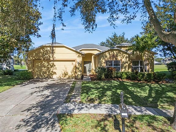 Under contract-accepting backup offers. **Video Tour Available** Welcome to Stoneybrook West where the HOA INCLUDES INTERNET and CABLE, a 24-hour GUARDED GATE, an Olympic-sized swimming pool with a children's splash zone, FITNESS CENTER, playground, tennis courts, basketball courts, pickleball courts, fishing/viewing pier, private boat ramp to Black Lake and a community activity calendar! This home backs up to a POND and OVERLOOKS THE STONEYBROOK WEST GOLF COURSE, so there are NO REAR NEIGHBORS. This is a spacious SINGLE-STORY home with a split floorplan. Upon entry you’ll notice the vaulted ceiling in the formal, yet warm living and dining spaces. There is a PRIVATE OFFICE with French Doors. Please note that the office is counted as one of the four bedrooms. The EAT-IN KITCHEN has GRANITE COUNTERTOPS, new BLACK STAINLESS STEEL APPLIANCES, a double pantry and passthrough to the family room. There are sliding glass doors leading to the PRIVATE AND SCREENED POOL and SPA from the family room, living room and primary bedroom. The extra-larger primary suite has a large WALK-IN CLOSET, double sinks, separate tube and shower, water and linen closets. The AC WAS REPLACED IN 2022 and the ROOF WAS REPLACED IN 2017. Other upgrades include ceiling fans and a new garage door opener. This home is just minutes away from the community town center, golf clubhouse, great schools, restaurants, shopping, a hospital and entertainment. SELLER IS OFFERING A $10,000 CREDIT AT CLOSING WITH A FULL PRICE OFFER FOR BUYER TO RESURFACE THE POOL.