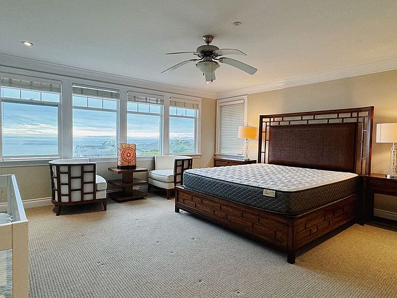 Welcome to this stunning south-facing home with panoramic ocean views in the sought-after White Rock neighborhood! This main & upper residence is spacious and fully furnished, offers 4,000 square feet of living space, features two levels with 4 bedrooms, 3 bathrooms on the 2nd floor and the main living room with 2 bathrooms on the main floor. The living room, kitchen, and upstairs bedrooms all offer stunning ocean views! The main level boasts an open-concept design with 10-foot ceilings, an office, two dining areas, a media room, and a mini bar. Floor-to-ceiling sliding doors maximize the breathtaking views, and all windows are equipped with automatic blinds. The home is finished with high-end details including hardwood floors, stainless steel appliances, and granite/stone/quartz countertops. Just steps from White Rock's iconic Front Street, you'll enjoy proximity to great restaurants, cafes, bars, shops, and other amenities. Schools: White Rock Elementary & Semiahmoo Secondary Available: Now Furnished Size: 4,000 sq ft Layout: 4 Bedrooms + 5 Bathrooms Features: Stove, oven, hood fan, fridge, microwave, dishwasher, washer/dryer Utilities: Electricity, gas, water, internet not inclued Parking: Garage + front parking No smoking No pets Please note that this residence includes the upper and main two levels of the house, while the basement is occupied by a friendly and quiet couple. We are seeking responsible and reliable tenants. Please email your basic information and availability to move in. Requirements: -Reference and credit check -Tenant insurance -Minimum 1-year lease