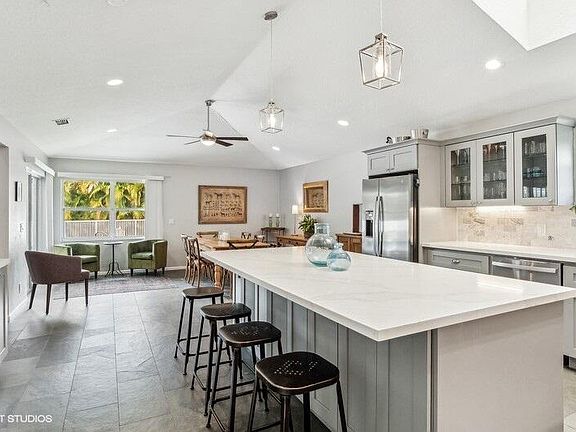 Don't miss this rare opportunity to own an exquisite estate in one of Wellington's most desirable neighborhoods, Meadow Wood. This 4 bedroom pool home exudes elegance and sophistication, offering the perfect combination of luxury and comfort. The property is over half acre with oversized circular driveway, located on a quiet cul-de-sac. This home features an open and airy floor plan, high ceilings, and large windows that flood the interiors with natural light. The chef's kitchen is a highlight, boasting top-of-the-line stainless steel appliances, quartz countertops, a large center island, and custom cabinetry. The primary bedroom is a true retreat and a lavish en-suite bathroom featuring dual vanities and a separate glass-enclosed shower. Multiple living & dining areas, family room and a cozy den provide ample space for relaxation and gatherings. Step outside to your private backyard oasis. The screened-in oversized patio area, fenced pool and beautifully landscaped yard offer a serene setting for outdoor entertaining. Many upgrades include newer roof 2021, remodeled kitchen & new appliances 2019, new tiles 2019, freshly painted exterior 2024, Washer & Dryer 2023, hurricane rated garage doors 2021 and much more! Very low HOA and close to top A rated Wellington schools, parks, WEF, shopping, and dining.
