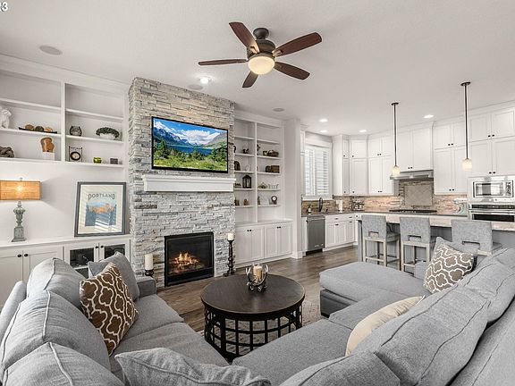 Beautiful Like-New Home In The Heart Of Bethany! This sought after Noyes build has an exceptional open floor plan with high ceilings and large windows allowing in tons of natural light. Spacious kitchen with chic quartz countertops, SS appliances, wine fridge, and walk-in pantry. The living area provides ample room for entertaining, and features a stunning floor-to-ceiling stone fireplace with built-ins adding to the home's charm. Versatile guest bedroom / den and full bath on main. Primary bedroom has a gorgeous en-suite with soaking tub, walk-in shower and huge walk-in closet. Enjoy the tranquility of the serene green space from the comfort of your covered patio, and take advantage of the fully fenced and nicely landscaped yard. Custom upgrades include: elegant shutters throughout home, surround sound on main, high-end home theater system in bonus room, soft-close cabinets and slide-out ShelfGenie, EV outlet, indoor / outdoor TV mounts, and outdoor high-end speakers with volume control. Great schools, parks, shopping, and restaurants close by. Easy access to HWY and convenient commute to Intel & Nike. ENERGY STAR and Earth Advantage Platinum certified home. Fresh professionally painted interior, entire house professionally cleaned and windows washed. This home is turnkey!