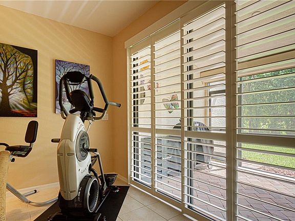 This home features numerous upgrades including, plantation shutters, hurricane impact glass, electric roll down shutters on lanai, new master bath, new quartz counter top with back splash in kitchen, emergency generator hook up to main electric panel, whole house surge protector, water softener, new enclosed screened front entrance, A/C has whole house air filter with UV technology, new refrigerator, new dishwasher and much more. Enjoy a quiet evening in your own private salt water hot tub located on the screened lanai. This community is located a short distance from the future mixed use complex of "The Pointe" at Founders Square. It will add several new shopping, entertainment and restaurant options to this already great Naples location.