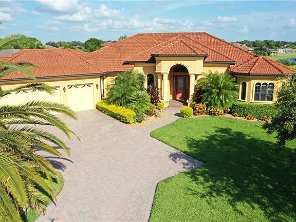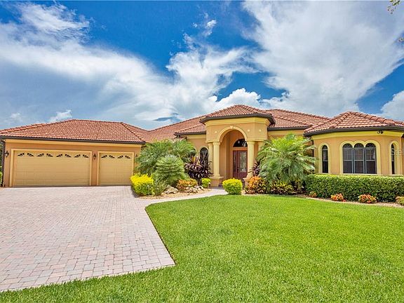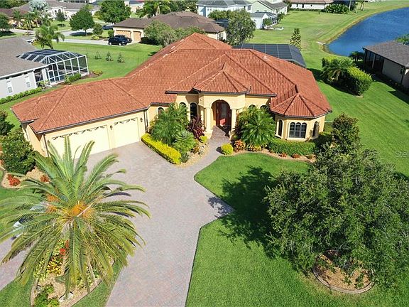 Tastefully designed, and professionally crafted, this home in the Twin Rivers community exudes modern elegance that will leave you speechless. Masterful design and luxury are featured throughout with the merging of inspiration and grandeur every inch the eye can see. Did somebody say grand entrance? Immediately draw your sights up with the charming vaulted tray ceilings from the moment you step inside the foyer. Every detail in this home was carefully selected. The versatile floor plan can fulfill any family's needs. With plenty of square footage, you can entertain your hearts delight. Whether you are hosting a formal dinner party, casual sit down, breakfast at the kitchen bar area, or a glass of wine around the dry bar, the possibilities are endless with this multi use space. The massive master is the ultimate retreat with pool and lake views, which make for an exceptional awakening, and the ensuite won't leave you disappointed either. Work your eyes around the show stopping double head glass shower, centered in the middle of the master bath. Unobstructed 360 views open up the space to even more light and air, making for a rich spa experience. For those longer days, a custom jacuzzi tub awaits. Never run out of relaxing options in this home, or closet space! In addition to the double doored master wardrobe this home offers generous closet space throughout the home with custom built in shelving and drawers in each! Going into the office has become a thing of the past! Work uninterrupted in the private formal office, which features a charming library wall for your collection of literature, or adjacent to the kitchen at the built in workstation. Great for homework, recipes, and shopping list. If you are in need of a en suite, one can be accessed from either the garage entry or the hallway. Formal living room, a keeping room, and a den for movie night, offers everyone a cozy moment. French doors in the living room with iron detail to reveal the second part of the owners custom design. Highlights include, a tropical oasis style pool and spa, a sun shelf raised fountain with towering Birds of Paradise and palms that complete the authentic FL state of mind. Stock the outdoor fridge with all your favorite beverages, fire up the gas grill, and invite everyone over for the weekend BBQ. Don't worry all your friends' cars will fit in the driveway too. Grab your golf cart and fishing poles from the 3 car garage and head down to the River House located at the other side of the community. Use one of the community Kayaks or store your own! Drop in a line, boat or kayak as you relish in one of Florida's natural rivers. You don't want to miss your chance!