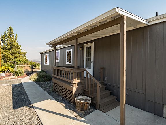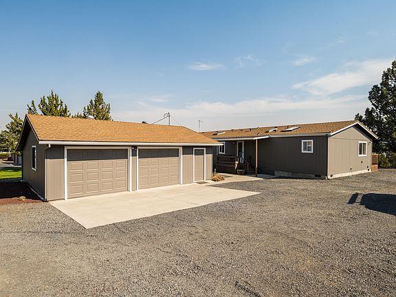 Nestled on nearly 2 acres overlooking the stunning Crooked River Canyon, this charming manufactured home offers breathtaking views of the canyon's rock walls and Mount Jefferson. Built in 1994, the 3-bedroom home features an open floor plan and picture windows that frame the incredible scenery. While the interior awaits your creative touch and updates, the potential is limitless. The primary bedroom opens through French doors to a deck and covered patio, perfect for enjoying the peaceful surroundings and abundant wildlife. Outside, a fenced garden area offers an opportunity to restore its beauty, and the detached 2-car garage with a small workshop adds extra functionality. With brand new exterior paint and a freshly stained deck, the home's exterior is ready for you to make it your own. Imagine owning this serene slice of Central Oregon, where tranquility and natural beauty come together. The views are unmatched, and the possibilities are endless.