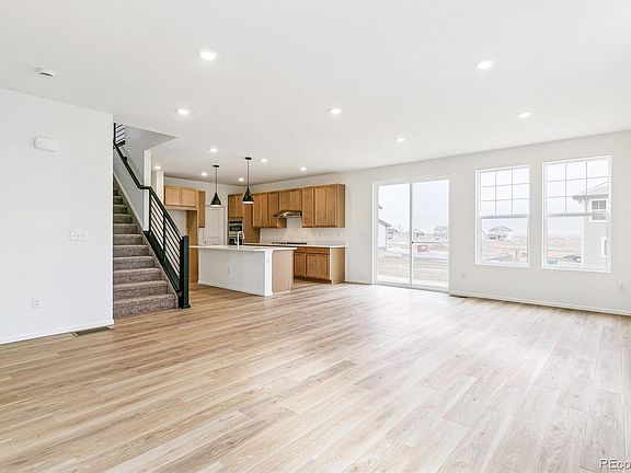 This lovely two-story home with a finished basement features an open floor plan with 9ft ceilings and a spacious great room. The finished basement adds large recreation area, full bath and additional bedroom. The roomy kitchen with an over-sized island for extra seating, features 42-in. Upgraded Timberlake Fairfield Rye stained cabinets and iced white quartz countertops, GE stainless steel appliances including a gas range and gourmet kitchen. Work from home in the private den with French doors. The spacious primary suite boasts a large walk-in closet and the bath showcases a dual vanity sink and large seated shower with with decorative tile. The main living space, bathrooms, kitchen and laundry room have upgraded low-maintenance plank flooring. The two car garage and finished basement will give ample space for storage. Relax outdoors and share some family time in your private backyard that backs to open space. The Listing Team represents builder/seller as a Transaction Broker.