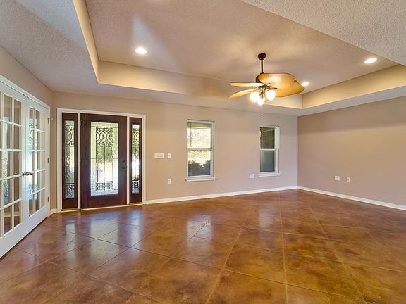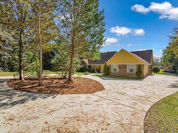 Move in ready, located on popular Timber Ridge Drive with fresh paint throughout. One level home, with split floor plan and open living area. This home sits on nice 2.26 Acre lot with a pond, shed and circular driveway! This property is in a great location close to everything but with the benefits of acreage, pond and privacy from both the front and back porch! No carpet, this home has stained concrete floors throughout. Great kitchen with breakfast bar and nice stainless appliances, including over-sized refrigerator and gas cook top double oven. Kitchen is open to the living and dining area and additional study. Best feature is the fabulous acreage in the backyard! Easy to show call today.