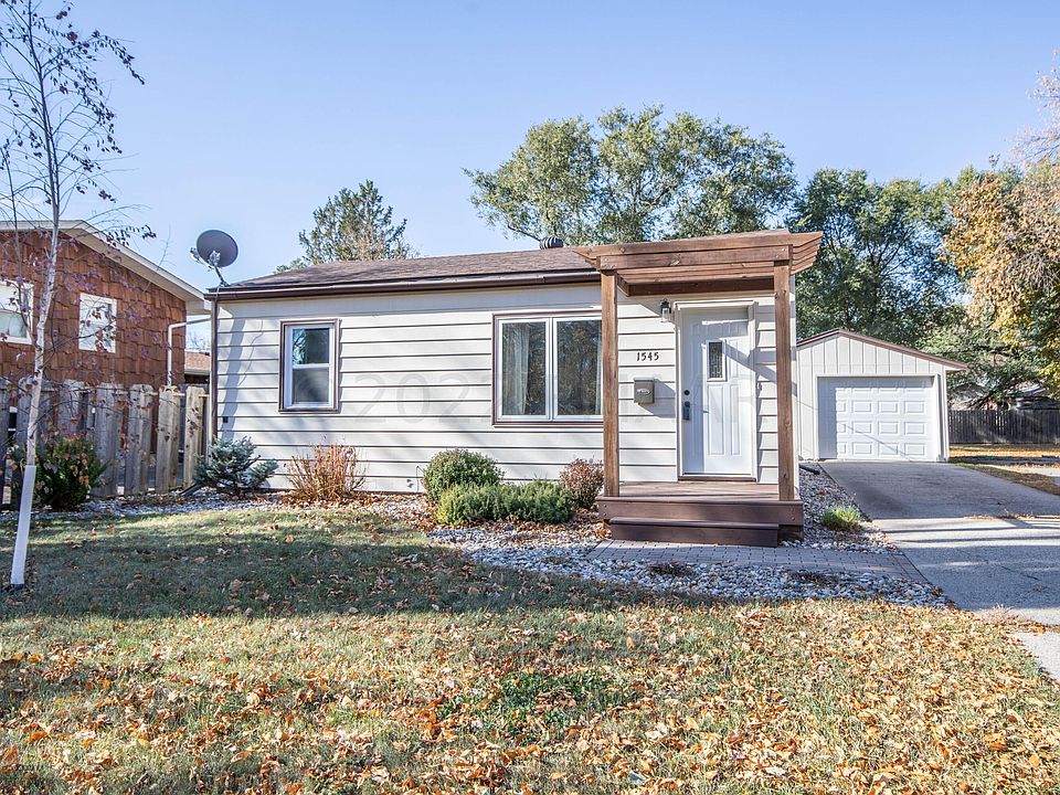 Whether you're searching for your starter home, looking to downsize, wanting ONE LEVEL LIVING, or enjoy a minimalist home, this adorable 2 bedroom 1 bathroom home is for you! Nestled in a quiet, tree-lined neighborhood, you'll find the living room, eat-in kitchen with a laundry space, two bedrooms, and an updated full bathroom all located on one level. You'll enjoy details such as bead board ceiling and accent wall in the living room, tiled shower, hardwood floors, and updated light fixtures. Both the furnace and tankless water heater are new in the last two years. And the updates don't stop inside! Concrete curbing, landscaping rocks and plants, metal siding, front porch pergola, back deck, and convenient storage shed can be found outside!
