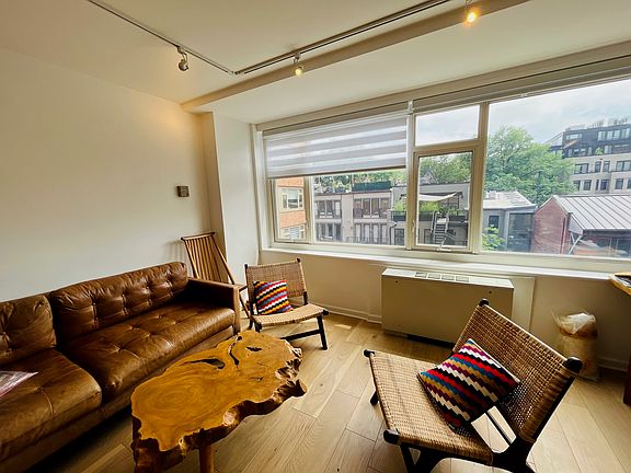 Airy, sun-filled one-bedroom apartment just a three-minute walk from Dupont Circle. The apartment was recently renovated in modern Scandinavian style, including with white-oak floors, open layout, updated fixtures, brand-new kitchen appliances, and dimmable lights. The living room and bedroom have large, south-facing windows, filling the space with tons of natural light that can be controlled with zebra shades.