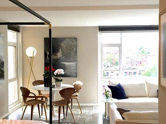 *** Completely renovated, elegant studio w/ stunning city views in a DREAM Dupont Location***! Huge windows, great layout w/ space for bed plus living area. Flooded in light! ALL New: flooring with modern gray hues, contemporary ceramic tiles in the kitchen, Samsung GAS stove,SS micrw, sink, subway bath tiles & modern vanity. AMAZING closet space. Glorious roof deck views, 24h desk, All UTLT.INCL!