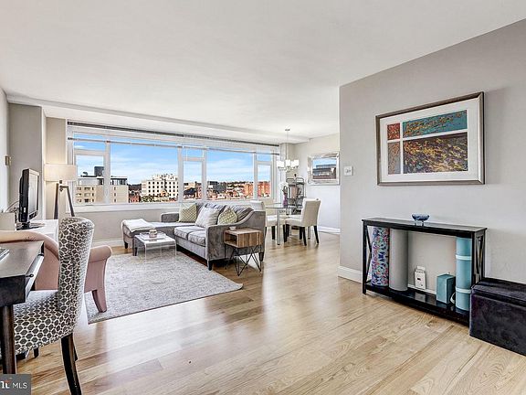 Welcome to this sunny & spacious 1-bedroom condo in the heart of Dupont Circle! This corner penthouse unit features an open layout, updated plank hardwood floors, a newly renovated bathroom, tons of closet space, and panoramic windows with spectacular sunset views. Centrally located next to shopping, dining, and Metro, this pet-friendly building offers a roof deck, bike room, and 24-hour front desk. Separately deeded parking space available for rent or purchase.