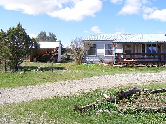 Well maintained, open concept rancher with 3 bedrooms + office, 2 baths and 2 large living areas, vaulted ceilings throughout, skylights, and bay window in living area. Family room boasts an energy efficient wood stove and 3 sliding glass doors to a patio area. Master suite has his and hers closets - one being a walk-in, a master bath with dual vanities, plus linen closet. Spacious kitchen with island and pantry. Many upgrades - Newer vinyl siding, and windows, newer metal roof, 2 car over sized garage plus shop (or could be 3rd bay), 2 car carport, greenhouse, storage shed, separate wood shed, and 90 foot covered deck. Views of Needle Rock, Saddle Mountain, and Cathedral Peak, 10 minutes from Crawford Reservoir and 10 minutes to Town of Crawford, 20 minutes to Black Canyon National Monument.