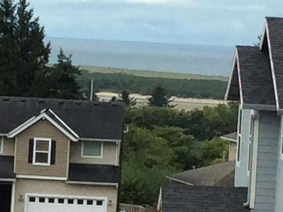 Great floor plan for your entertaining. Large, open kitchen/dining room to slider at oversized paved patio. Living room with fireplace. Upstairs family/loft area opens to all bedrooms. View of ocean from upstairs. Grassy area in back for pets or garden.