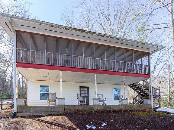 This 4BR/2ba nostalgic Lake Burton cabin rests on a 1.71 ac. point lot with sweeping northern views, one of the few remaining estate lots! This property offers the opportunity for someone to enjoy the existing cabin until they are ready to build. This home has been lovingly enjoyed by the same family for the past 3 generations, featuring beds galore and a sink in every bedroom! The great room features a vaulted ceiling with exposed beams, brick fireplace, dining area and galley-style kitchen with breakfast bar. A full-length screened porch is the perfect spot for relaxing while enjoying lake and mountain views. This special property is ready to start a new scrapbook of memories!