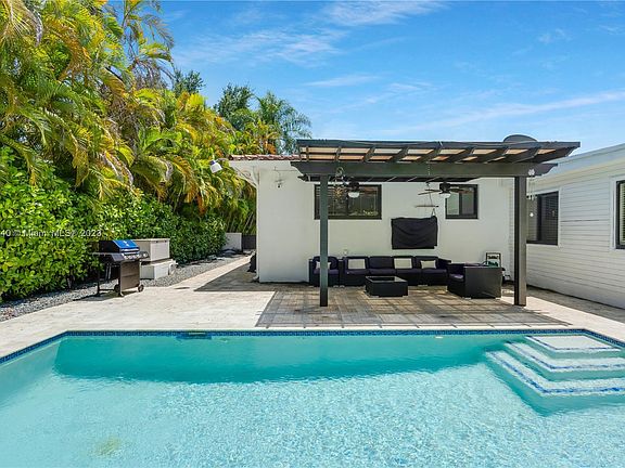 Walk into a light and bright home, perfect for entertaining guests! Split floor plan, 4 bedrooms, 3 bathrooms. Features a formal Living and Dining rooms plus spacious Family Room. Fully fenced backyard includes modern tiled patio with stylish swimming pool and tranquil pergola lounge area. Double lot with landscaped gardens (palm trees), two semi circular driveways, and 2-car garage. Impact windows throughout the house. Close to all major highways plus the University of Miami, The Biltmore, MIA Airport, and short drive to Brickell and Doral. A MUST SEE! MOVE-IN READY!