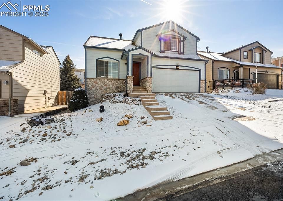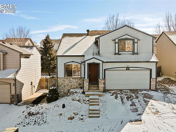 Welcome to this beautiful 3 bedroom, 2 1/2 bathroom home conveniently located on the west side in a quiet community off of Garden of the Gods Rd. Walking through the front door you'll notice the newly installed luxury vinyl plank floors, large vaulted ceilings, and the updated modern lighting fixtures . There's also smart tubing for hanging a TV. The main floor consists of an open living room flowing into the bright dining room that has direct access to the backyard. The galley kitchen has newly installed countertops, sink, dishwasher, range oven, and microwave. A powder room finishes off the main floor. From the sliding glass door off the dining room, step onto your large wooden deck for bbq's and get togethers as you overlook your large backyard that's fully fenced and has a custom shed in the back. The upstairs consists of the three bedrooms, including the primary. The primary bathroom has a large walk-in closet and a dual vanity. Downstairs off the kitchen, the basement is fully finished with recessed lighting throughout. There's a large unfinished portion of the basement that contains the laundry room has plenty of storage (with a window) that can be finished for extra square footage. In addition to the cosmetic upgrades, the HVAC system and furnace were replaced in 2022/2023. Unique to the area, the home is less than a quarter mile from neighborhood access to Sinton Trail, which connects to the Garden of the Gods trail system, America the Beautiful park, and the Santa Fe Trail. Safeway is less than 5 minutes away as well as King Soopers. The home is also located at the top of the cul-de-sac, cutting down the traffic dramatically. Come check out convenient, affordable living on the West Side of Colorado Springs.
