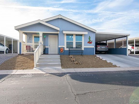 Check out this wonderful home in Arrowhead Ranch! Open floorplan with lots of windows for plenty of natural light. The vaulted ceilings are throughout the Kitchen, Dining, and Great Room. This home also boasts 2 Bedrooms and 1 & 3/4 Bathrooms. Furniture may be negotiable. The laundry is neatly tucked in its own space just off the side entrance. Outside this home is a large screened carport with utility shed. This home is conveniently located near Fort Mohave's shopping and Hospital. Arrowhead Ranch is a manufactured home community that features a community clubhouse, dog park, pool, and spa.