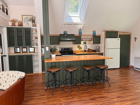 Light and bright with vaulted ceilings and gorgeous views from the many windows.