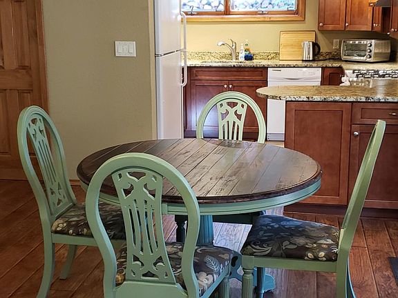 Our cozy apartment is the complete first level of our house with its own private entrance. A set of stairs is leading down from the street level of our roughly 1000square ft apartment. The entire house is nestled into a beautiful, natural landscape with a water feature & forest access. The apartment is very cozy with lots of natural light from big windows and glass sliding doors which lead directly to the back yard and the forest. The kitchen includes a microwave/ toaster oven, fridge/ freezer, dishwasher, gas stove, 2 stainless steel sink, all dishes, pot, pans, dinking glasses and more. A beautiful dining table set, made from sturdy wood w 4 matching chairs is set next to the small kitchen island. The entire kitchen has a granite countertop and high quality, wooden cabinets. In the dark & quiet bedroom is 1queen bed, a night stand with lamp, 2 large dressers, a big closet for hangers and a small vanity dresser with a wall mirror. We also store an ironing board and the iron inside the closet. The living room has a 2 seat and a 3 seat couch, a small coffee table, decorative gas fireplace with mantle, a book shelf and a wall mount for a TV. The kitchen, dinning area and living room are one open space with several doors and windows. The entire long side is facing the back yard and forest behind the house. The bath room has a double sink with a granite counter top, a shower and full tub with glass sliding doors. The shower/ tub & floor are tiles. We are a family of 3 and live above the unit with our dog Clover. We are social and like to engage with our tenants when appropriate however we do respect their privacy and honor quiet time in our house from 9pm - 6am. We pay close attention to the needs of our renters and try to find solutions in a timely manner. As long experienced landlords we appreciate clear & detailed communication & prefer an honest and friendly relationship. We love long walks with Clover, attending to the garden and enjoy an active lifestyle in general. A few of our favorites activities are hiking, biking, running, paddle boarding, swimming, Pilates, areal silks & winter sports. It takes about 3 minutes to get to the pipeline trail which accesses hundreds of miles of hiking and biking trails, 5 minutes to Flagstaff down town, hospital is 5 min away, NAU also 10 min. Safeway, some restaurants and shopping is in walking distance. Please schedule a showing with us at your convenience! Hope to see you soon! Looking to prorate lease for the rest of May. Utilities are included. We are looking for a single person.