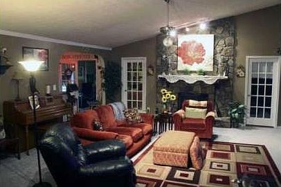 Spacious ranch on a private wooded lot with 2 ponds, firepit and a double fenced backyard with a storage building. Large deck with hot tub, great for entertaining. Updated kitchen has granite and plenty of cabinets. Hardwood floors in dining areas and kitchen. Sunroom off the kitchen. Seperate office. Family room has a vaulted ceiling and stone fireplace. New carpet. Terrific location, Kell High School district.