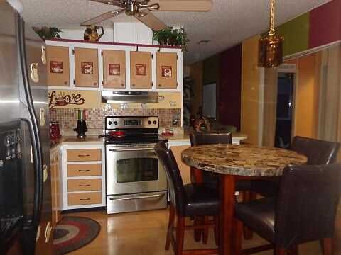 PENDING - REDUCED AGAIN, MUST SELL! - Decorated with bright, vivid colors for you to keep, or change to your own liking. Size, value and location are what make this home the home for you. This 2 bedroom, 2 bath, Palm Harbor home has a very colorful pallet. The screen entry has a wooden, spiral step entry into the welcoming breakfast area. Kitchen has upgraded Stainless/black appliances, coordinated small appliances, glass back splash, a double stainless sink and laminate flooring. The double carport is perfect for two vehicles. There is a front raised vinyl screen room off the living area, vaulted ceilings, sky light, utility shed with Maytag washer/dryer, shingle roof and newer A/C unit, 3 yrs. old. Call Jean to view this home at: 863-286-1166.