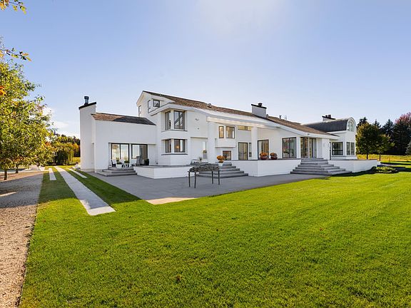 This refined contemporary home stands with sculptural presence amid 14 acres of meadow, pond, and a distant tree line. The 8,000 square foot home with main floor living room, family room, office, library complete with wet bar, sunroom, terraces, wrap around decks, lower level exercise room and sauna brings broad volumes. Included are arched rooflines and wide expanses of glass that invite light from every direction, creating an atmosphere both open and serene. The main floor, primary bedroom opens to the sleeping suite with fireplace and walk in dressing spaces and closets. Two additional second level bedrooms and third level loft spaces provide an elevated view of the main floor and outdoor landscape. The guest house mirrors the home’s quiet artistry with one bedroom, bath, kitchenette, two attached garage spaces, next to the crystal blue pool and overlooking a pond alive with wildlife that changes with the seasons. Designed for privacy, beauty, and light, this is one of Medina’s most significant country properties—where architecture, land, and sky meet in perfect paradise.