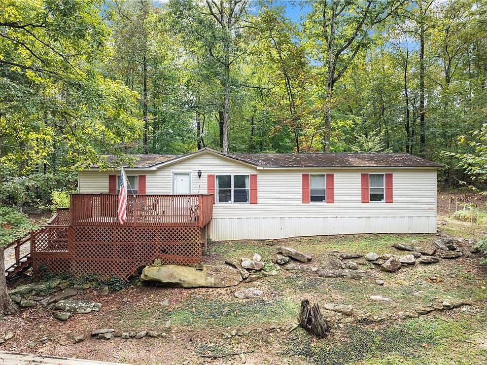 Welcome home to 1545 Lower Creighton Rd! This well cared for manufactured home features 3 bedrooms and 2 full baths, on a permanent foundation and is nestled on just OVER ONE PRIVATE WOODED ACRE, with NO HOA, surrounded by beautiful horse farms and large estate homes. The roof was replaced in 2018, carpet was replaced in 2024. water heater was upgraded and replaced in 2019. A new propane tank was just added for gas cooking! The primary suite bathroom features an oversized tile shower and shiplap accents. The Nest security system/camera is hardwired and stays with the property. This property has a Cumming address but is in the HIGHLY sought after school district of Free Home Elementary, Creekland Middle and Creekview High in Cherokee County! Can you say LOCATION LOCATION LOCATION?!! The title of this manufactured home HAS been retired (per Cherokee County tax commissioner) and is on a permanent “affixed” foundation so this property should qualify for a low or NO down payment FHA or VA loan! Make your dreams of home ownership come true today with this lovely, private, well maintained home!