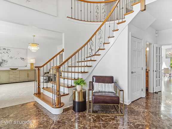 Presenting 1545 Macalpin Circle, a timeless, classic all-brick custom home, nestled within Braymore Hills - the highly sought after, beautiful Inverness neighborhood you've been waiting for! Move right in to this updated and upgraded 7700+ sq ft home and enjoy easy summer living all year round. A grand, winding bridal staircase welcomes you as you enter the two-story foyer, flanked by a chic, formal living room with wood-burning fireplace & lovely dining room with large bay window. Fresh paint, gleaming hardwood and tile floors on the main level, plus NEW plush carpeting and custom millwork can be found throughout. Continue through the foyer to the custom, light & bright gourmet kitchen, with large center island, generous, sun-drenched breakfast area, and spacious, walk-in pantry. Entertain guests or prepare everyday meals with ease in this well-appointed, heart of the home, featuring a Viking gas range with griddle cooktop & double oven, Sub-Zero refrigerator, beverage fridge, marble subway tile backsplash, white cabinetry with undermount lighting, stunning modern light fixtures, brushed gold faucet with pull-down sprayer, custom produce basket storage and more! Open to the kitchen is the cozy family room, with stone, wood-burning fireplace and views of the back deck and sprawling backyard. Laundry won't be a chore at all in your sunny mudroom w/ washer & dryer, butcher block counters, custom built-ins & cabinetry, plus sink and backyard access. Just beyond this area is a full bath and private office that could easily be used as a first floor bedroom or in-law suite. Relax and unwind in the glorious primary suite, worthy of a 5-star hotel rating. Enter through the large sitting room that could become another home office or nursery before finding a generous bedroom sanctuary drenched in natural light. Two separate walk-in closets with custom built-in organization systems complete the room before you enter the luxe primary bath, with his and hers custom vanities, oversized dual shower with frameless glass, separate whirlpool tub and water closet. Additionally, on the 2nd floor you will find another ensuite bedroom with walk-in closet and spacious bath with double vanities, walk-in shower and whirlpool tub. Two more bedrooms share a newly remodeled Jack & Jill bath, and offer large closet space, new carpeting, and fresh paint. The newly-renovated hallway bath boasts custom cabinetry, double vanity, soaker tub and large, walk-in shower. The enormous finished lower level offers an open concept rec and game room, full bar with 2nd kitchen, full bath, new home theater room with electric fireplace, new home gym, storage and stair access to the awesome, three-car garage. Close to great local shopping & dining and located within the award-winning Barrington School District.