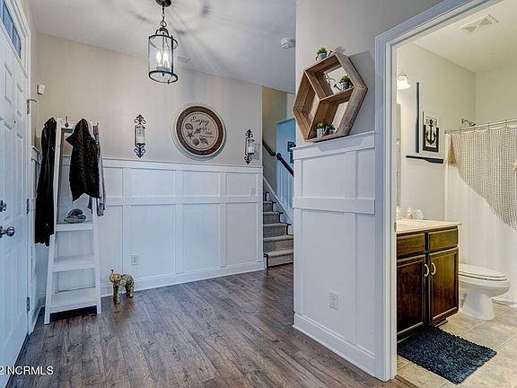 LOCATION LOCATION LOCATION! Move-in ready 4 Bedroom, 2 Bath home in desirable neighborhood near Mayfaire, Wrightsville beach & medical. This low maintenance home features a open floor plan providing coastal living at it's best! Immediately opening the front door you are greeted with a beautiful wainscoting entryway. Next an updated staircase with a padded runner going to the finished room over the garage. Walking forward into a beautiful Living room area with large windows that let the outside in! The Living room has Custom built-ins to display your favorites along with a Dimplex Electric fireplace. Entertaining is easy in this home because the way it is designed you are able to have a large table & chairs as well as a kitchen peninsula to enjoy & sit at. Large pantry, gorgeous granite counter tops, beautiful dark wood cabinets/updated hardware for that finish look! The large dining room area there is a custom shiplap half wall which adds more details & beauty in this area as well! As you walk into the master bedroom your eyes are drawn upwards to a beautiful trey ceiling along with plenty of room for a king size bed and extra space to enjoy! Another custom mantel & electric fireplace is available to make this a special sanctuary a place to enjoy, sleep & rest! Adjoining is a large master bathroom with dual vanities and large walk-in closet. This home has been updated with new light fixtures and ceiling fans throughout! CPI security system is available, Custom slider blinds are at the sliding glass doors in dining room, 12 x 16 screen porch with tile flooring & outdoor television mount to use as well. Walking outside screen porch area you are in paradise with a 7 person hot tub (be 1 yr old in April) a 16 ft x 52 in. high Intex pool with a sand pump, a custom built trek deck for the pool with white rock & landscaping around the pool area too! The sellers added a french drain in the backyard to make sure yard drains well during heavy rains! Lots of extras! Come see