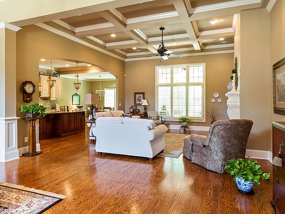 Beautifully landscaped and well maintained French Country Cottage-styled home in a pre-eminent subdivision. The rear of the dwelling is a key feature. It is beautifully landscaped with several flowering plants that bloom at different times of the year. A disappearing stream creates a peaceful sound and adds to the attractiveness. A conservation area is behind the lot and each side of the lot is bordered with larger plants to create privacy. The covered porch is recessed into the house allowing three walls for privacy and protection from the elements. Both the porch and patio are flagstone. The rear faces east, which along with the trees avoids the afternoon heat. Anyone would love this area as their haven to escape and relax. The interior has an open look for the great room, kitchen, dining room and breakfast area. All ceilings are 9 feet except the great room coffered ceiling and dining room/foyer are 12'. The kitchen is 10'. The master BR has a 10' trey ceiling and the study is a vaulted wood stained ceiling. The master bath has his and hers vanities, dual shower heads, and a barrel vaulted ceiling. The great room and porch ceilings are equipped with surround speakers. There is also a nice butlers pantry adjacent to the dining room and kitchen. Plus there is a large walk in food pantry. The interior is also designed to create privacy for the master living area and the design also allows for programmed and zoned heating and cooling for energy savings. The subdivision offers privacy but easy access to shopping, restaurants, and entertainment. A clubhouse and pool are also included.
