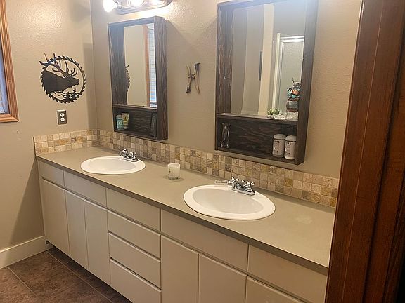 Rare to find a home this nice! It even has a RV dump, another rare find. Big open kitchen w/ lots of cabinet & counter space. Step out of the kitchen to the large covered patio in the private manicured backyard. Enjoy fire pit between patio & deck, established garden next to shed. The siding, all floor coverings & counter tops were replaced 5 years ago. Huge master bedroom w/ walk-in closet. Master bath has dbl sinks & shower heads. Laundry sink. HEATED GARAGE! Located across the street from a lovely park. New roof in 2019. Fresh paint Inside & out in 2020. Deck has been redone this year.