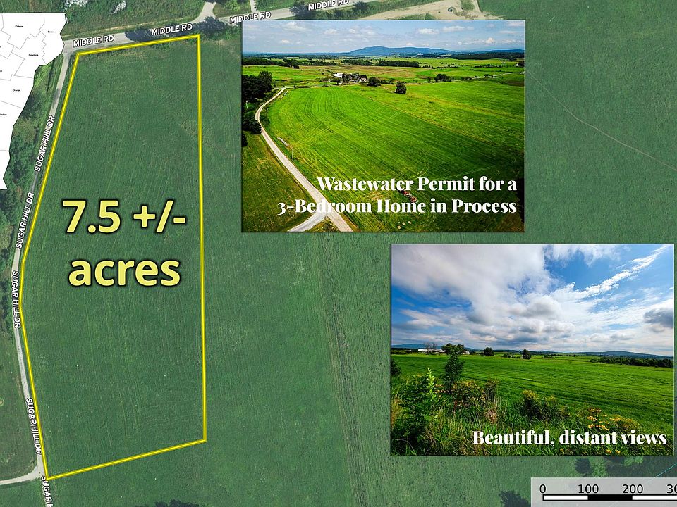 Come experience the idyllic farming community of Bridport, VT on this 7.5 +/- acre building lot. The lot is currently an open farm field with a very gentle slope that is hayed regularly. You’ll enjoy nice distant views of the mountains to the northeast from the proposed 3-bedroom homesite. An existing state-issued wastewater permit conveys. The property has road frontage on a paved town-maintained road; buyer will determine where to bring in the driveway off Middle Road. Utilities are across the road frontage, and high-speed internet is available. Town water is available on Middle Road, but a private drilled well may be more economically feasible; buyers to do their own due diligence. Lot was recently subdivided, approved by the town, and is fully surveyed and marked. This lot should be very easy and straight forward to develop for your future country home! The town of Bridport is nestled on Lake Champlain with public access points close by for your boating, fishing, and recreational pleasure. Only 20 minutes to Middlebury, VT, a well-known college town with major shopping, entertainment, and hospital. Approximately 1 hour from Burlington and the airport.
