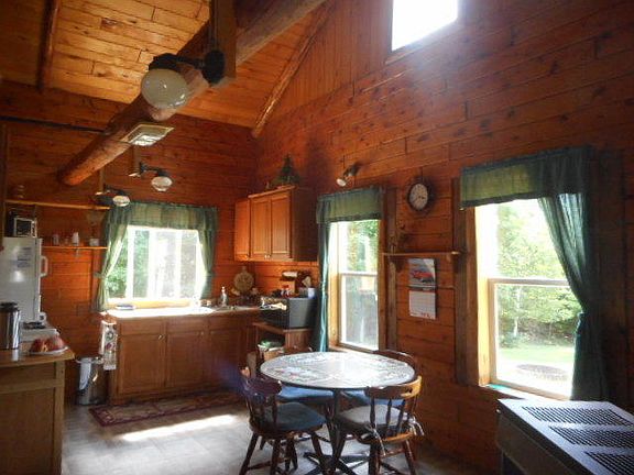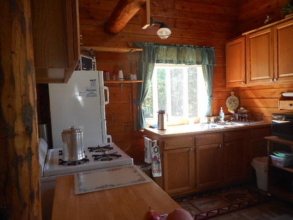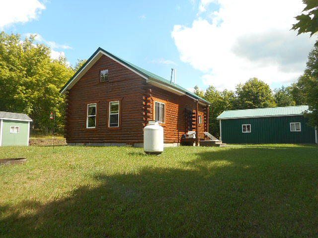 61.37 acres, 4 deer blinds, trails, rolling hardwoods and mixed conifers! Good road meanders into a cozy log cabin on a ridge with bear, deer & turkey visits! The sellers added in 2008 a 24x32 nice garage with cement floor, and wired for generator, & 5500/6500 gasoline generator included stored in a new shed that has electric or pull start. Cabin is 1.5 story full log with a nice loft with open staircase. A main level bedroom with a open great room kitchen, dining living room combo. A gas wall heater along with a cozy wood stove, wired for generator, with gas lights, & solar power for lights for ease. Gas fridge, stove, & hew gas water heater in 3/4 bath. Gravity draining for ease with a nice dry 4 block sand crawl space accessed from inside. Furnished, turnkey ready, & close to Chip Lake!