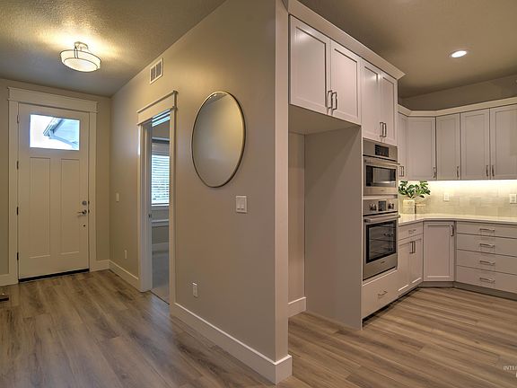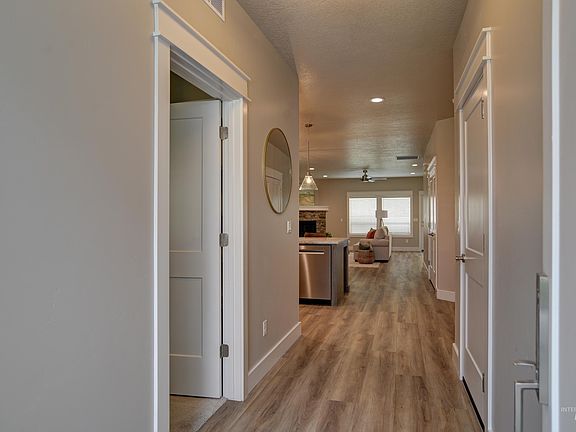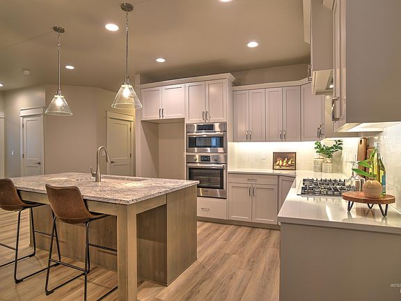 Just completed. Potenza by Ted Mason Signature Homes. Charming low maintenance single level home with exceptional craftsmanship. Quality finishes and touches throughout, including quartz counters in kitchen and baths, custom built alder wood cabinets, blinds included, LVP and tile flooring. Open floor plan, generous great room with cozy fireplace. Kitchen boasts center island, full tiled backsplash, Bosch appliance package, spacious dining & walk-in pantry. Primary suite and ensuite with dual vanities, no step walk-in tiled shower, separate room for water closet and ample closet space. 2 car garage with 200 AMP service for electric vehicles. Front and rear covered patios. Front views of common area. Nestled in the heartbeat of downtown Meridian this charming community of single level modern New England cottage style patio homes will capture your heart. Cherry Blossom features a gathering area w/gazebo, fire pit & built-in BBQ. Convenient downtown access.
