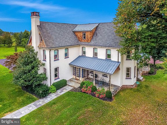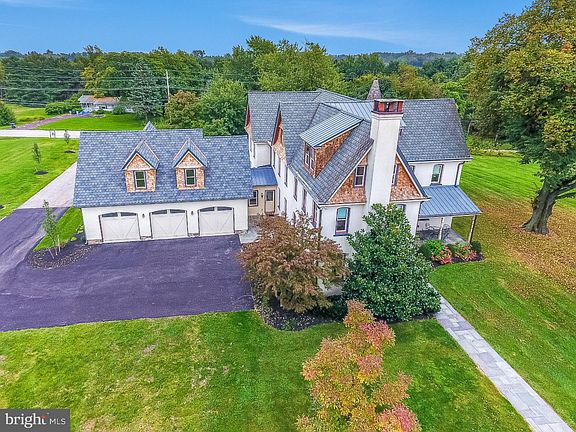 Exceptionally charming and Exquisitely Renovated 6 Bedroom Farmhouse with an open floor plan and expert attention to every detail, situated on a gorgeous, fenced, 1.72-acre lot, designed to create a masterful blend of old world charm with modern day informal luxury. Renovated by a renowned builder for his own home in 2005-6, with renovation costs exceeding $1.7 million, including a 4-story addition, plus a 2017, attached, oversized 3-Car Garage addition, the goal was to provide modern amenities, comfort & warmth, while preserving the original flavor of a late 1800s stone farmhouse. This was achieved beyond expectations with the beautifully pointed & richly colored deep stone walls w/arched openings, restored hardwood floors, custom millwork to recreate 19th century appointments, new, solid 4-panel doors to replicate the originals, high baseboards & new large windows w/deep windowsills, many using reclaimed wood from the original barn. Each 1st floor room offers 9' ceilings, low voltage recessed lighting with mood controls, & stereo speakers with individual controls, and each room flows easily to the next, ideal for entertaining. The spacious Living Room with custom bar features a turreted alcove with built-in seating & custom rounded windows and walls. Pocket doors connect the Living Room to the incredibly spacious Dining Room w/space to easily seat 20 guests. The custom Chellew Gourmet Kitchen features granite counters including a 2-tiered island, Viking commercial propane gas range w/6 burner stove, 2nd Bosch oven & additional top-of-the line appliances & features an arched stone opening to the fabulously comfortable Family Room offering a wood-burning FP & included wall-mounted TV w/surround sound. The 1st floor Office w/stone walls features French doors accessing the center Hall. The 2nd floor offers a luxurious Master Suite w/fantastic walk-in professionally organized closet & stunning Master Bath w/spa-worthy shower with 4 shower heads & glass block wall, whirlpool tub & vanity w/dual glass bowl sinks. The 2nd floor includes 2 more bedrooms with en-suite upgraded full baths plus a Laundry Room. The 3rd floor offers a terrific Recreation Room plus 3 additional bedrooms & Full Bath. Elegant wrap-around greystone covered porches accent the exterior.4 zones of heat & air (all air units replaced 2020); security system & instant hot thru-out. 40 minutes to center city Phila; 15 minutes to King of Prussia & easy access to all major routes. This is a charmer! Also available for purchase with totally renovated, magnificent 14 stall bank and additional acres. 2021-06-20