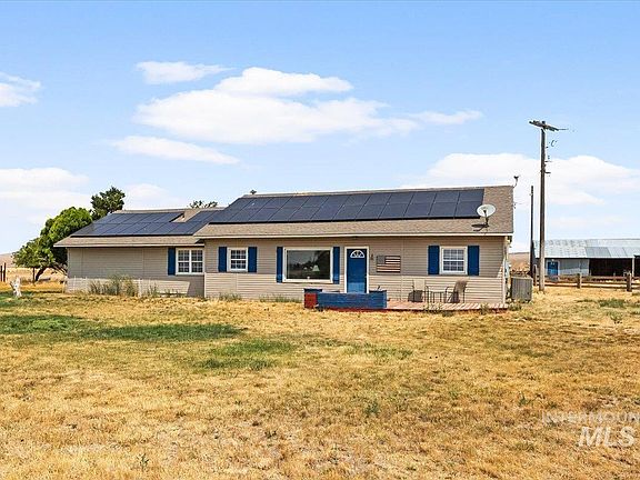 Huge Price DROP!Enjoy country living with this updated farm & ranch-style home boasting stunning foothill views and close proximity to town. Bring your pets, livestock, and toys to this spacious property featuring vinyl siding, updated electrical service, and a newer well. The barn includes hay loft, stalls, and there's a 24x14 enclosed shop plus four covered bays for equipment. Inside, a flow-through kitchen with custom-coated wood countertops awaits, offering ample space for a growing family. Solar panels for more affordable living!! schedule your showing today! Well water to use with lots of water to water the mini farm and some pasture! Great setup for your chickens and farm.